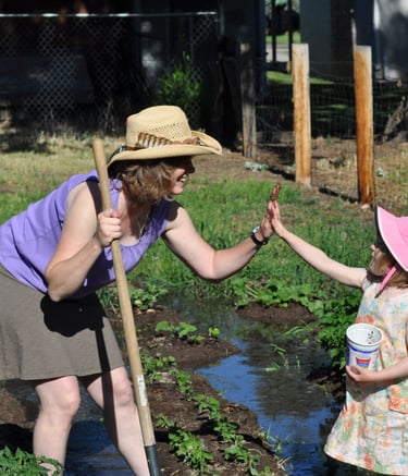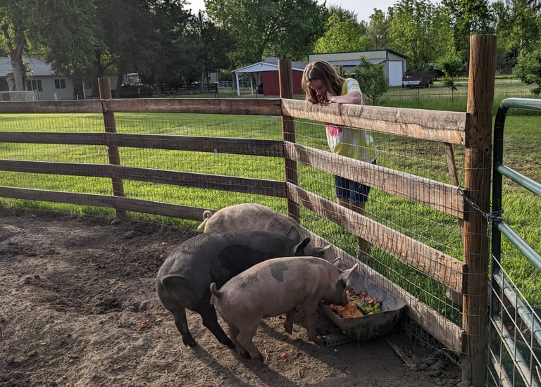 Wendy and Clay Ellestad bought the ReWild farm property in the Sycamore District of northwest Boise in 2012. With a new baby and a toddler, the Ellestads had a lot on their hands in the early years! Over the past decade, Wendy and Clay have slowly shaped the farm from an acre of dirt covered with goathead weeds, to a healthy and productive urban farm. The property now boasts a small orchard, large growing gardens for fresh produce, and a barn that is often full of a variety of animals.