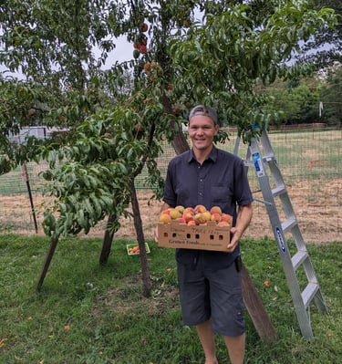 We offer a small number of produce shares for the summer growing season from late May to late September. Buying a share and becoming a member entitles our customers to a weekly produce basket throughout our season. Weekly baskets have an interesting variety of 4-6 types of vegetables, based on what's being harvesting that week. Fruit from our orchard of apples, peaches, plums and pears will make bonus appearances in baskets in the hot months, just for fun!